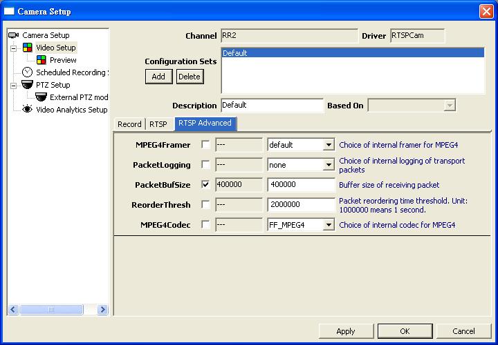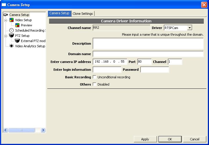 - Driver選擇RTSPCamSelect RTSPCam as driver